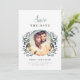 Du är förlovad! Det här visuella sparandet av datumet är perfektens sätt att tillkännage dina stora nyheter. Anpassa kortet omedelbart så att det matchar ditt eget foto och din egen text i bröllop stil med hjälp av de mallar som finns. Den här designen har en vattenfärgsfärg blommigt och löv vapensköld i blått och rosa, och den levereras med en passande mönster på baksidan för en speciell beröring i extra. Den här designen är en del av vår "Garden Vapensköld"-samling i bröllop. Se till att checka ut samlingen för att se ett intervall med matchande artiklar för din stora dag och varje händelse däremellan.