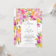 Gratulera till din speciella dag med den här häpnadsväckande, handmålade blommigtens bröllopsinbjudan. Den här designen är full av vibrerande rosa, gult och lila och utstrålar en ny och glad vår och sommarvib. Perfekt för utomhusbruk, trädgård eller romantiskt bröllop i säsong, de känsliga penseldragen ger dina bröllop-detaljer en konstnärlig och elegant beröring.