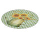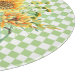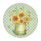Söt land/bondgårdskonstruktion har en vattenfärgad illustration av trädgårdsvattenbildning som kan fyllas med en bukett av solblommor på mynta grönt och vit schackbräda.