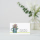 Ett affärskort som är dekorerat med en vintage som vattnar kan och en bukett av lila blommor som är utdragen med bläck och färgad med en vattenfärg som är accentuerad med kalkgrönt rand.