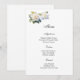 Meny kortet visas med en vacker gardenia blomma som visas på det signerade kortpappret i vitt.
