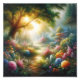 "En serenavbildning av en lush-trädgård, badad i solljus. Den pulserande färgen av blommor och ömtålig kom av lövning till livet, skapar en lugnande oas som inbjudan ska stanna upp och tänka på naturens skönhet. Biet fångar kärnan av fredlig ensamhet och naturlig harmoni."