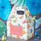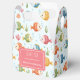 Den här personligen har en förmånslåda med leende tropisk fisk i levande skuggor av rött, blått, grönt, gult och orange, som simmar mellan sjögräs, korall och bubblor, som ställs mot en mjuk ljusblå bakgrund.