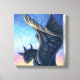 Gargoyle Guardian Art av Traci Van Wagoner skriver ut, poster, tillbehör och presenter och har en blå och grått-stenstensfärgning som tittar tillbaka till dig från hans perk högt ovanför tidigt-morgonen med en texturerad soluppgång himmel av gult, orange, rosa, violett och blått. Ge dig själv en gargotilförmyndare idag för att behålla en klocka.