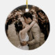 Garnet firar två år av kärlek bröllop-årsdagen och fotobakornament. Enkel kontur för grafik med Bröllop-årsdagen av-hörnstenen, röd och vit mörk. Anpassa ditt prydnadsföremål med ditt eget data, namn, bröllop och ett speciellt foto på motsatt sida. Den andra årsdagen förknippas med garnet och hjärtat symboliserar kärlek. Det finns andra matchande artiklar och firande på bröllop-årsdagen. Grafik och design av Sarah Trett för www.mylittleedenweddings.com på Zazzle.