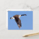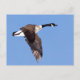 En kanadensisk gäs som flyger i en ljus blå himmel.