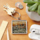 Gäss och ankor strövar konst fyrkantig silverfärgad nyckelring