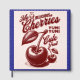 Den här designen har en lekfull körsbärsillustration i vintage-stil i djupa röda toner, tillsammans med fet retrotypografi. I texten står det "My Delicious Cherries" med en leende körsbärsmassas ovan, tillsammans med roligtar som "Yumi Yumi" och "Cute Fruit". De stora, detaljerade körsbären och löv ge poster vibe på en nostalgisk fruktmarknad, medan det sammantagna utseendet blandar söthet och charm med ett klassiskt, handdraget estetiskt utseende.