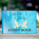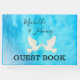 Redigerbar gästbok. Vacker blå bakgrund med duvor och rosa hjärtan. Perfekt för att skapa minnen!