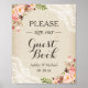 Rustik burlap spets blomsterbröllop gästbok skylt poster.