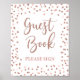 Gästbok Vänligen Signera bröllop skylt har en vacker rosa guld glitter konfetti design.