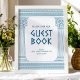 Gästboksskylt med minimalistiska tempelpelare och grekiskt meander-mönster i blått. Perfekt för dina antika Grekland- eller antika Romarriket-temade bröllop, förlovningar, examensfester, årsdagar, save the dates, möhippor och födelsedagsfester.