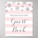 Vänligen signera vår gästboksskylt för baby shower, bröllopsfest eller bröllop med silversnöflingor och ljusrosa, perfekt för en vinter- eller julbaby shower.
