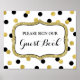 Vänligen signera vår gästboksskylt för baby shower, bröllopsfest eller bröllop i vit med svart och guld konfetti-mönster, observera att guld är endast en fotografisk effekt.