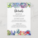 Bröllop-informationskort för gäster: Glöm inte detta användbara kort med alla dina viktiga uppgifter om bröllop, t.ex. plats, logi, transport etc... En modern och originell utformning för denna vattenfärgssvit i bröllop: färggranulat och subkutant, bran blandas mellan en klassisk botanisk design och ett fetstilt tema med ökenväxter. Perfekt för alla cactus älskare!