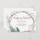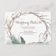 Rustic elegant snyggt Vinterbröllop och riktningskort på ren, vit bakgrund med en modern vinterkrans i grenar med gräs boughs. Fyll i informationen på plats. Du kan välja att anpassa den ytterligare genom att ändra typsnitt och färg på text. — Kortet är lämpligt för trendig i elegant vintertid, vintergrönt, skog, natur eller jultid bröllop. — Kontakta mig om du behöver hjälp med att anpassa den!