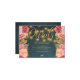 Inkvarterings- och riktningskort för bröllop med faux-kalligrafi-skript för guld, vintage-rustik shimming twinkle-strängar av ljus och rött, rosa och peony ro gräns på midnattsflottans blå kritbakgrund. Idealisk för sommarnatten i vår | trädgård | hösten | elegantens lyxaktiga chic inspirerade bröllop eller andra speciella händelser.