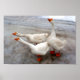 Foto av Zolotareva.Goose vit på den vita snö.Geese är roligt.