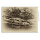 En intressant svart och vit vintage-rendering av en liten amerikansk alligator-vila på en större sovande amerikansk alligator.