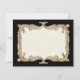 FÄRGPALETT: Svart, kräm och falskt guld metallutseende. DESIGNKOLLEKTION: Detta är en komplett bröllopsinbjudan som innehåller de flesta artiklar du kan behöva för att koordinera din bröllopsdekor. Med hjälp av original vintage antika Art Deco och Art Nouveau stiliserad blomsterkonst har Audrey Jeanne Roberts grafiskt utformat detta glamorösa guldbeläggda utseende, med en lyxig gyllene "skulpterad" kant med lockiga blad som virvlar runt ramen med stor elegans. Rullverket är elegant och snyggt. Det finns också skrivmaskinsdekorerade typografiska avdelare. Under ramen finns ett mjukt, spetsigt bakgrundsmönster i krämfärg. Detta utseende är perfekt för en Old Hollywood-inspirerad, elegant och sofistikerad glamour