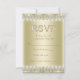 Art Deco OSA med elegant guld diamant brev på en vacker guld diamantbakgrund... Du kan enkelt anpassa den här eleganten guld diamant Art Deco Roaring 20:s Gatsby-OSA kort för din händelse genom att lägga till dina uppgifter i stil och den ordalydelse du väljer. Detta är en tryckt design utan egentlig glitter, juveler, bogar, upphöjda, präglade eller tillagda delar eller delara. En del grafik är uppspelt.