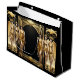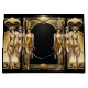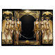 Tre glamorösa flapperdansare i latinska figur-huggande klänningar i guld är riktade mot en ornat, retro stil gräns ram som har en intrikad gränsdetalj i guld på den påminner om art nouveau och konsthändan. Den här designen är perfekt för en "underbar gatsby", "invigning 20", 1920:s Flapper-flicktema födelsedag, möhippa, bröllop eller årsdag. Det är idealiskt för affärsverksamhet eller personlig använda och är underbart även för en formelhändelse "svart och guld".