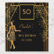 Elegant faux guld och svartgul etikett för 1920-talet med temat 50:e (eller någon ålder) födelsedagsfest! Dekorerad med 1920 års stil flapper-flicka, konst deco stil mönster och fyrverkerier. Anpassa och lägg till ålder 50, namn och datum. Golden text.