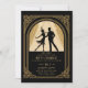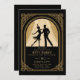En hägrande bra-roligt väntar med denna inbjudan till elegant födelsedagsfest med ett 20-talsmema med en deco-ram och en silhuett av en flapper-dans med sin partner. En perfekt födelsedagsfest inbjudan-mall för ett Underbart Gatsby-tema, i guld och svart. Oavsett om det gäller en 40:e, 50:e, 60:e, 70:e eller 80:e födelsedagsfest, eller för ett kommande 20-årsjubileum, kommer den här vintagen art deco nouveau ram i svart guld-folie (digital effekt) att visa sig ljusstark. En 20-åring talar lätt temaparty för en docka i vilken ålder som helst.