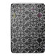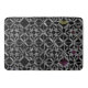 Ett komplicerat mönster av grått kor och cirklar som samverkar på en svart bakgrund med bara ett tips om färg.