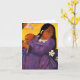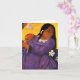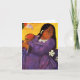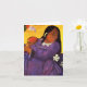 Paul Gauguin Woman med ett Mango-anteckningskort. Oljemålning på arbetsyta från 1892. Gauguin är känd för sin berömd av Tahiti och dess folk. Kvinnor med en Mango är ett av hans mest uttryckliga verk. Målningen har en flicka med svart mörk i en lila klänning som leker något medan hon håller en röd mango i högernas hand framför en gult. En liten text lyder "Vahine no te VI". En underbar gåva till fläkt av Gauguin, Cloisonism, Tahiti och tropisk målning.