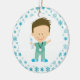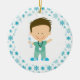 Rolig male doktor-, sjuksköterska- eller allmäntjänstgörande läkaretecknade figurer från småpotatisdesigner kommer på snowflaken gränsad keramisk julprydnad för ditt träd.