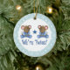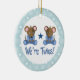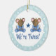 För pojkebebiset för underbar första jul har den tvilling- prydnaden pysmöss som iklädda blått med "oss är twillingar" citationstecken på snowflakebakgrund. En härlig minnessakgåva för en tvilling- baby shower eller en strumpastuffer för föräldrarna av twillingar. Konst C. Ne Metzger.