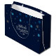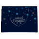 Julgåvan hänger lös med eleganta silver- och blåttstjärnor på en midnatt blåttbakgrund