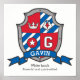 Knight stil sköld monogram brev G art namn poster perfekt för ett sovrum eller lekrum i röda, blå vita och grått. Med sitt eget barns egen namn och namn, vilket gör att du kan röra ditt barns sovrum eller daghem med personligen, är detta exempel för namn Gavin White Hawk. Kraftfull och snabb. Poster utskrift idealisk för en gåva till en nyfödd bebis-pojke, för en julklapp, baby-namngivnings- eller babyduschgåva. Unik sköld teckning, grafisk konst, namn-forskning, formulering och design av Sarah Trett. www.sarahtrett.com för www.mylittleeden.com