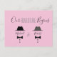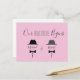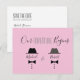 Enkel, minimalistisk rolig rosa och grå gay bröllopsräddningsdatum inbjudan postkort, med svarta flugor ritade monogram.