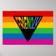 Den här gay pride-supporterkonstruktionen visar att regnbågstexten är "vänlig" i en triangel.