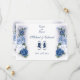 Fintvätt blått och vit ros med Bridgerton ReEmergency-stil-accents omger två klassiska mankameror, som alla ställs mot en skarp vit bakgrund.