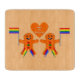 Den här skärbrädan i fantastisk har en digital bild av ett sött gingerbröd Gay Male-par. Pepparkaksgubbarna har regnbåge färgad i utkanterna på ben som matchar färg i pridets flagga. De har grönt- och rödknappar och viftar var och en med en flagga av regnbåge i färgaden. Båda har ett stort leende. Det finns ett gingerbröd ovanför paret som visar kärlek för varandra. Det finns en vit skrivning inuti hjärtat som säger "gjord för varann". Det här skulle vara en underbar gåva till ett Gay-par vid jul.