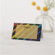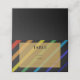Guide your guests to their seats in style — this folded tent place card features the signature rainbow stripe border on black with a warm gold interior panel for the table number and guest name. A polished finishing touch for reception tables, rehearsal dinners, or any seated celebration.