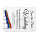 Den här roligten magnet är ett underbart sätt att låta dina vänner och familj veta att spara datumet för ditt kommande bröllop. Texten är fullt ut anpassade och lyder: Spara datumet för bröllop, med ett utrymme för att ange båda namn av paret, bröllop datum och bröllop. Har en bild av en raad med regnbåge i gay pride flaggor.
