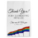 Den här presentpåsen är designad att samordna med Gay pride Rainbow Bröllop Suite. Den har en bild av en rad gay pride-regnbåge flaggor. Texten lyder Tack för att fira med oss! Parets datum namn och bröllop är fullt anpassade. Underbar för att du fyller med bröllop-svag för att tacka medhjälpare, familjemedlemmar, speciella gäster eller medlemmar av din bröllopsfest.