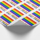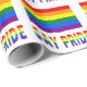 Gay pride Regnbåge-Flagga med rand av rött, orange, gult, grönt, blått och violett visas här med ord GAY PRIDE under, i färgen av flagga. pridet med den här presenten papper.
