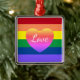Gay pride Rainbow Flagga HGBTQ-julprydnad med färgstark hjärtdesign. Med vita bokstäver kan du ändra texten. Ett lysande och glatt sätt att stödja mångfald och jämlikhet i julhelgen.