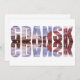 Gdansk text som består av den gamla stadens syn med eftertanke i vatten