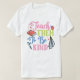 Den här designen har en vit t-shirt med ord-staven i ett stiliserat rosa-teckensnitt. Under den finns orden "DEM" i grönt, "Att vara" i blått och "TYP" i rött. Här ingår en bild av ett rött äpple, en brun bok och en blå penna.