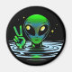 Grönt utomjording ge ett fredstecken, i vatten. Coola utomjordisk annan världsdel. För människor som är intresserade av USO.