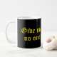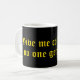 Mugg-designen med det roliga påstående: Ge mig kaffe och ingen får ont.