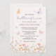 Den här elegant blommigt inbjudningskort för möhippan har charmerande blommor och pastellfjärilar på en ljus rosa champagnebakgrund. Konstruktionen är bohemisk, med en vismisk och romantisk känsla. Använda verktygen Design om du vill anpassa text, teckensnitt och färg. Tillgänglig även som hämtning.
