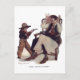 Upp med dem! Vintage bild om en cowboyson som håller upp pappa leker och fantastisk för fars dag!