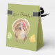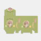 Favoritruta för Thanksgiving. Den här designen har en ljust grönt bakgrund som kan anpassas. Framsidan och baksidan har en brun kalkon med grönt och gult höst löv. Över varje kalkon finns ord, "Ge tack!", som kan anpassas med en namn eller en fras. På båda sidor finns grenar med fler fallande löv för färgad.